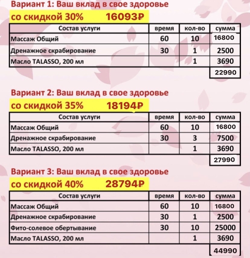 Программы с общим массажем